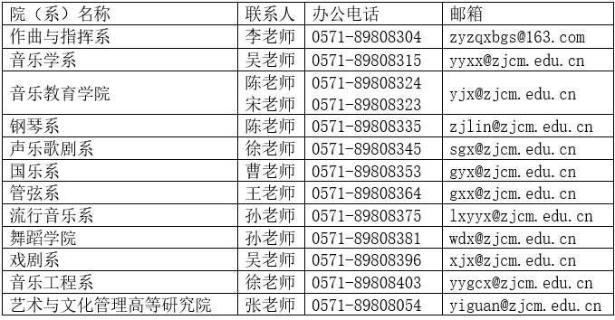 (四)各招考院(系)招生咨询联系方式(工作日,8:00-11:30,13:30—16:30)