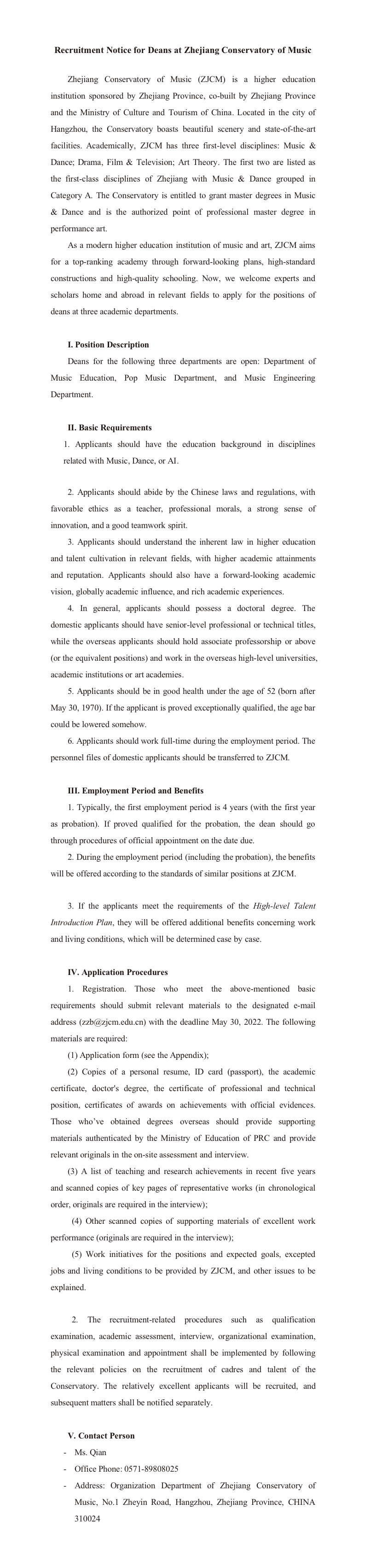 Appendix: Application Form for Deans at Zhejiang Conservatory of Music.doc