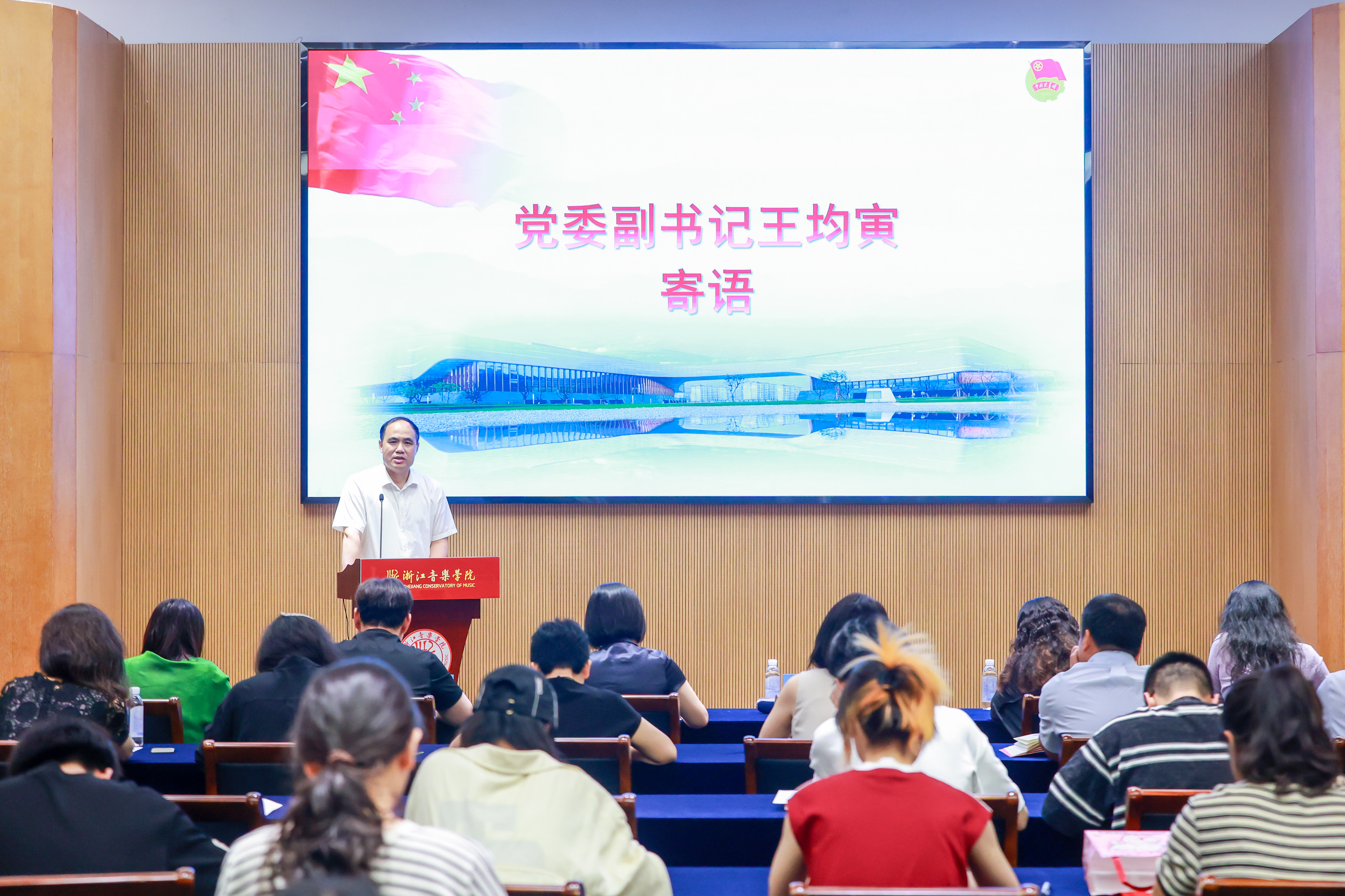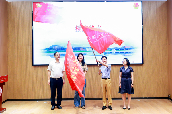 最后,在激昂的乐声中,校党委副书记王均寅,校党委委员、宣传部长施莹,向2024年“文艺轻骑兵”暑期社会实践团代表授旗,旗帜象征责任与使命的传递,浙音学子以大学为依托,以社会为舞台,接触社会、了解社会、服务社会,从中接受教育、培养综合素质,让青春为中国式现代化挺膺担当。