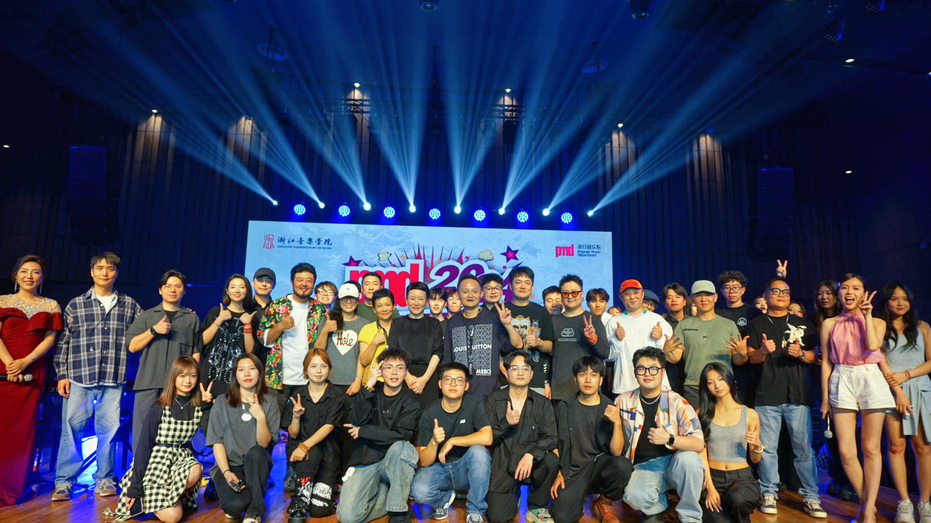 在联欢会的上半场,流行音乐系优秀校友张子扬、李凡一、文彦杰、高睿、刘珉轩带来了精彩的开场演出,不仅展现了流行学子的风采,还为2024级新生献上了一场精彩的视听盛宴。在下半场,流行音乐系教师进行了别开生面的“反串表演”,即演奏的老师当歌手、演唱的老师做乐队,以生动的实践展现了教师们的多才多艺和艺术表演的无限可能,同时引领学生向“一专多能”方向发展,不断提高行业竞争力和综合素质。