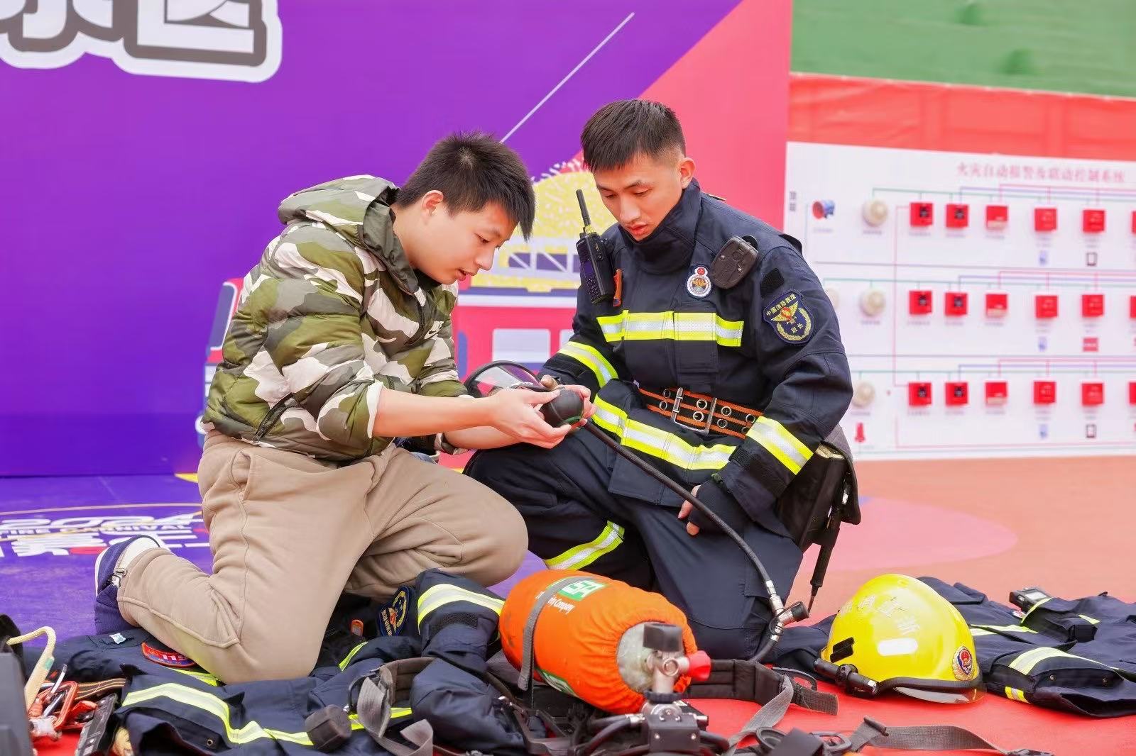 本次活动不仅是一场音乐的狂欢,更是与消防嘉年华的完美融合。活动现场,消防员向学生们展示了专业的消防装备,并讲解了日常防火注意事项,提高了大家对火灾预防和紧急疏散的认识,使学生们对消防工作有了更直观的了解。在欣赏美妙音乐的同时,学生们还能参与到消防游戏和体验活动中,在轻松愉悦的氛围中学习消防知识,传递“全民消防、生命至上”的理念。