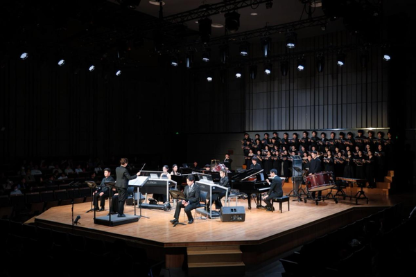 合唱学院秉承"艺术性、学术性、专业性、社会性"的办学理念,注重实践教学,先后与上海交响乐团、杭州爱乐乐团等知名乐团合作,完成了歌剧《图兰朵》《丑角》《爱之甘醇》《李清照》《江姐》,大型交响乐《红楼梦》《宋韵·华章》,贝多芬《d小调第九交响曲》等多部大型作品的演出,并在各类合唱赛事中屡获金奖。在本次音乐会中,合唱学院师生利用业余时间刻苦排练,攻克了晦涩的古拉丁语发音等难关,不仅展现了合唱学院的教学成果,更体现了学生们对艺术的热爱与追求。当《布兰诗歌》的最后一个音符消散,掌声既献给台上倾情演绎的青春力量,更献给那些在艺术长路上永不停歇的追光者。