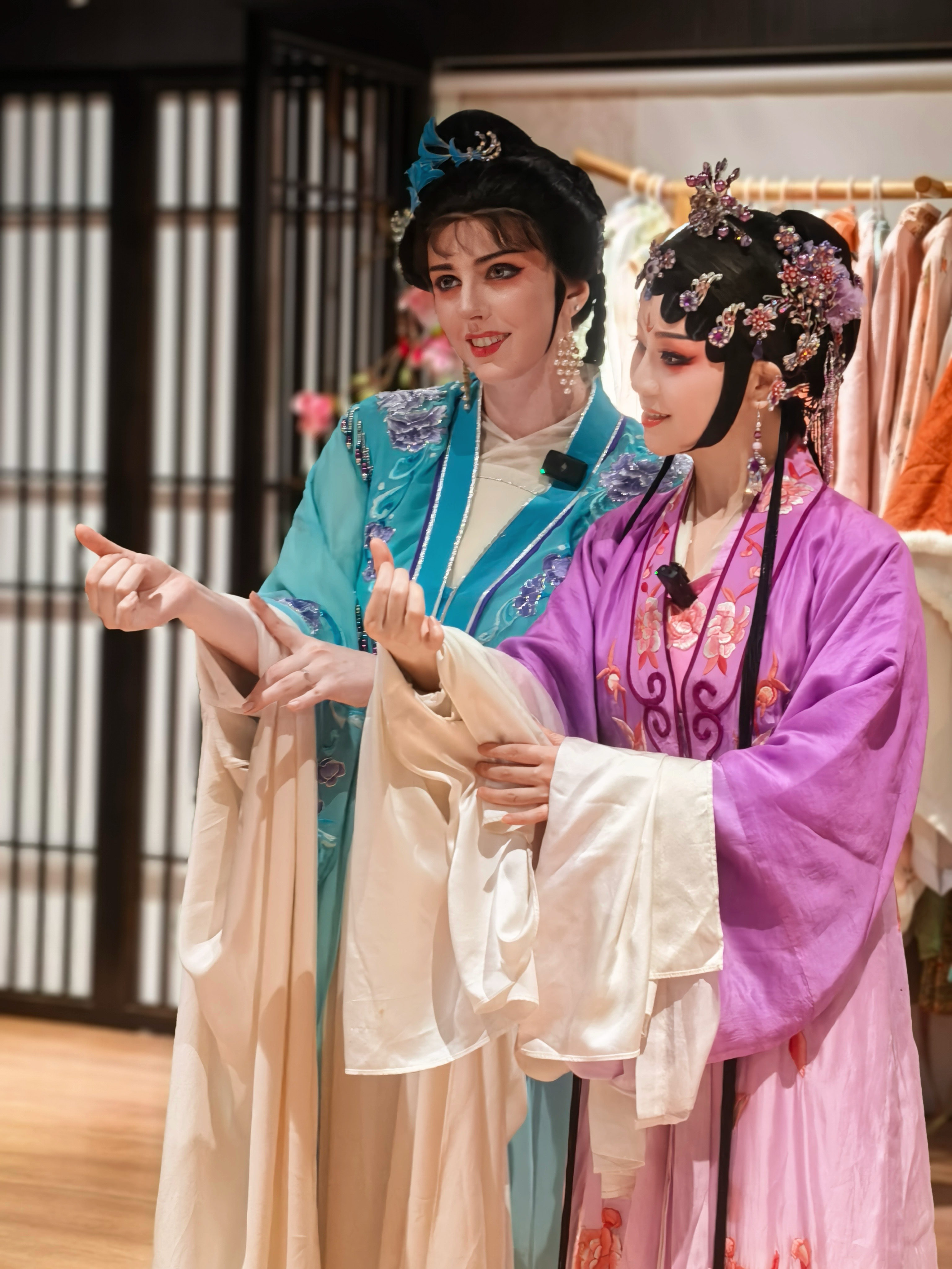 “原来看起来简单的甩水袖,做起来一点也不简单。”在全球拥有超百万活跃粉丝的德国知名博主海雯娜(Heyden)跟随金彩芳反复练习越剧《牡丹亭》的水袖动作。当她终于成功让1米长的雪白水袖在空中划出完美弧线时,现场爆发出热烈掌声。