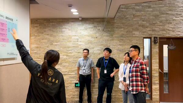 在雅马哈公司相关负责人的陪同下,工作组一行先后参观了企业产品展示中心、琴房教室,详细了解了企业的发展历程、核心业务布局及行业前沿动态,对行业发展趋势有了直观认识,也为后续精准对接岗位需求奠定了基础。